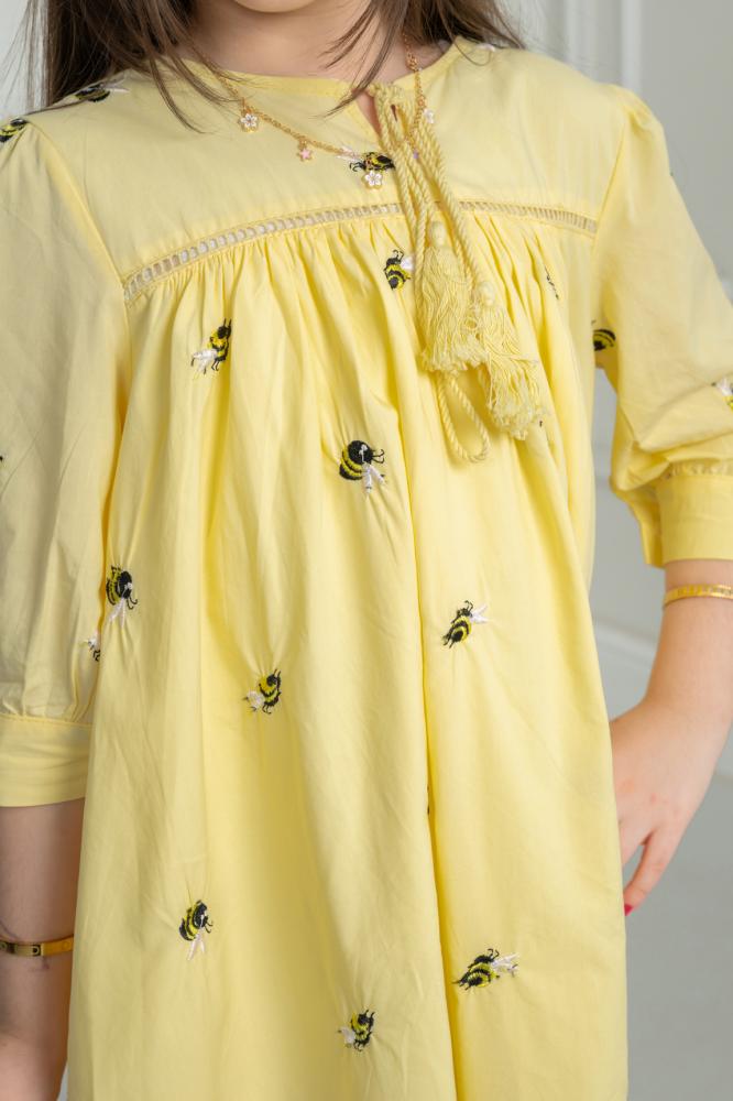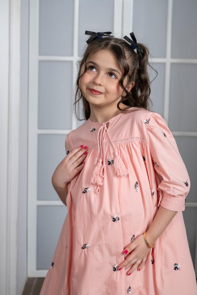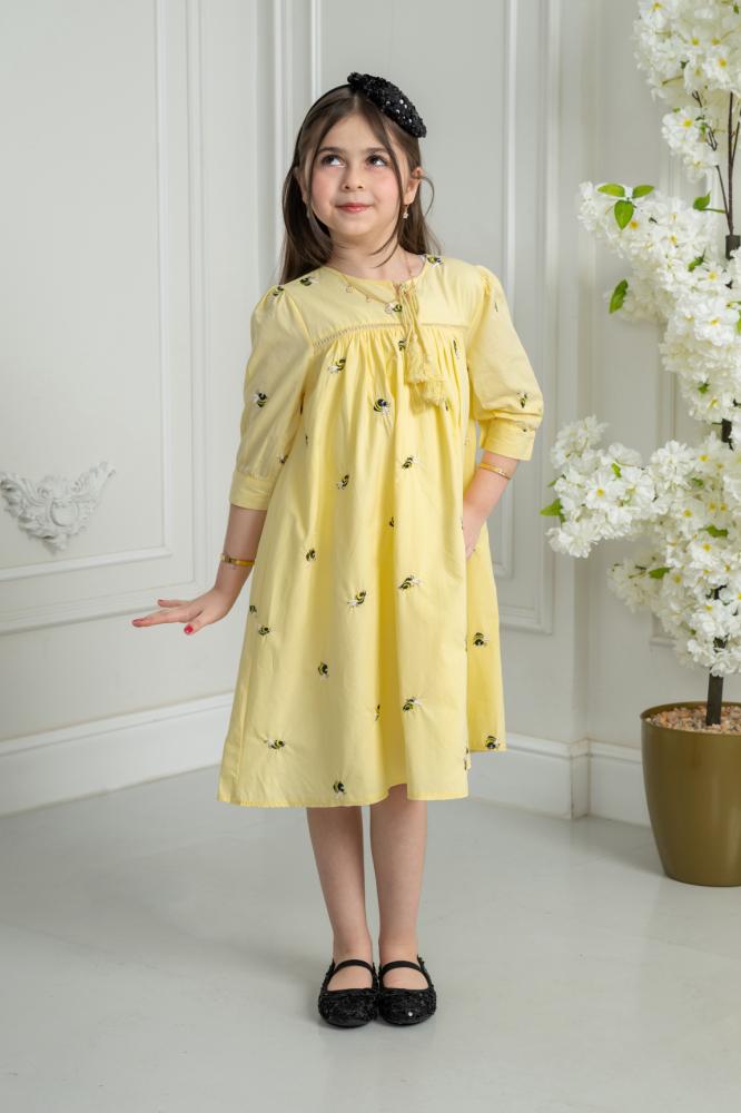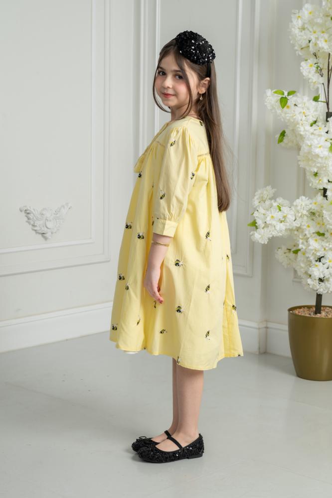 ✨ فستانين ناعمين بتصميم أنثوي مميز، الأول باللون الوردي الفاتح 🌷 والثاني بالأصفر المشرق 🌼، وكلاهما مزدان بنقشات صغيرة أنيقة تضيف لمسة من البراءة والجمال.